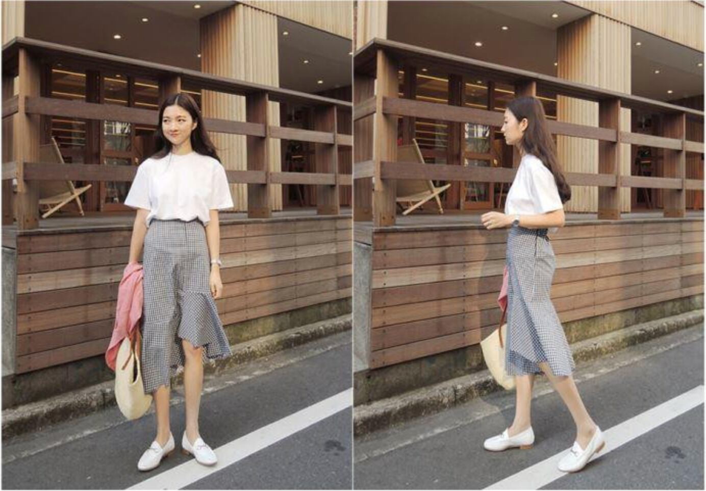 動きのあるスカートにシンプルなTシャツがとても可愛い♡