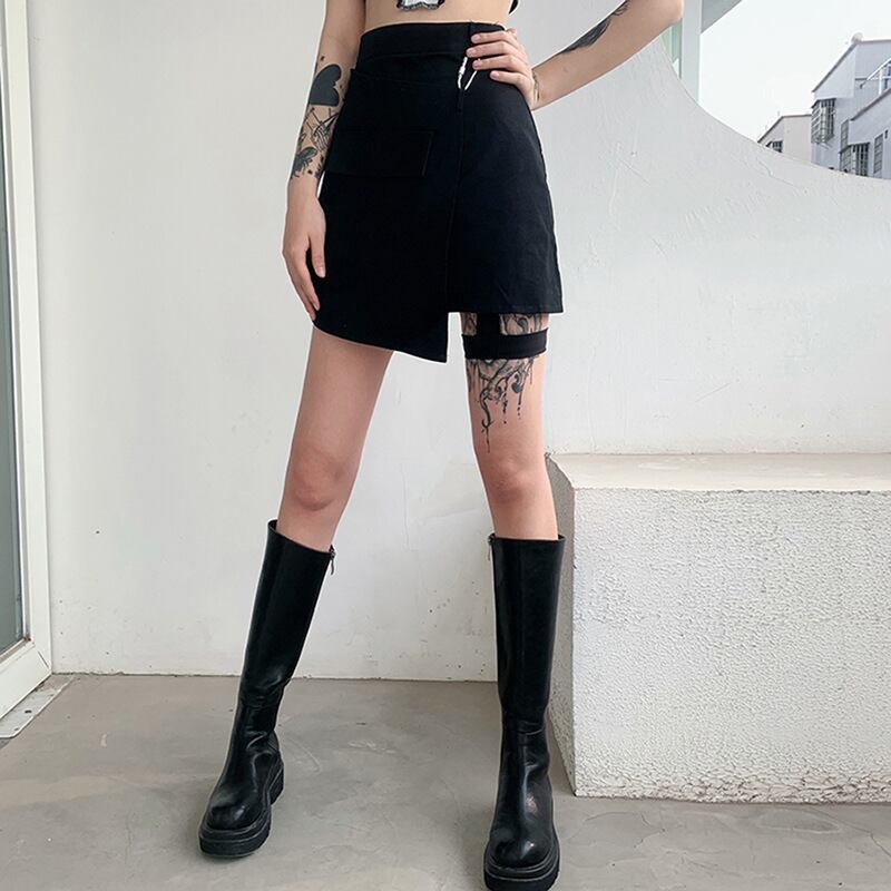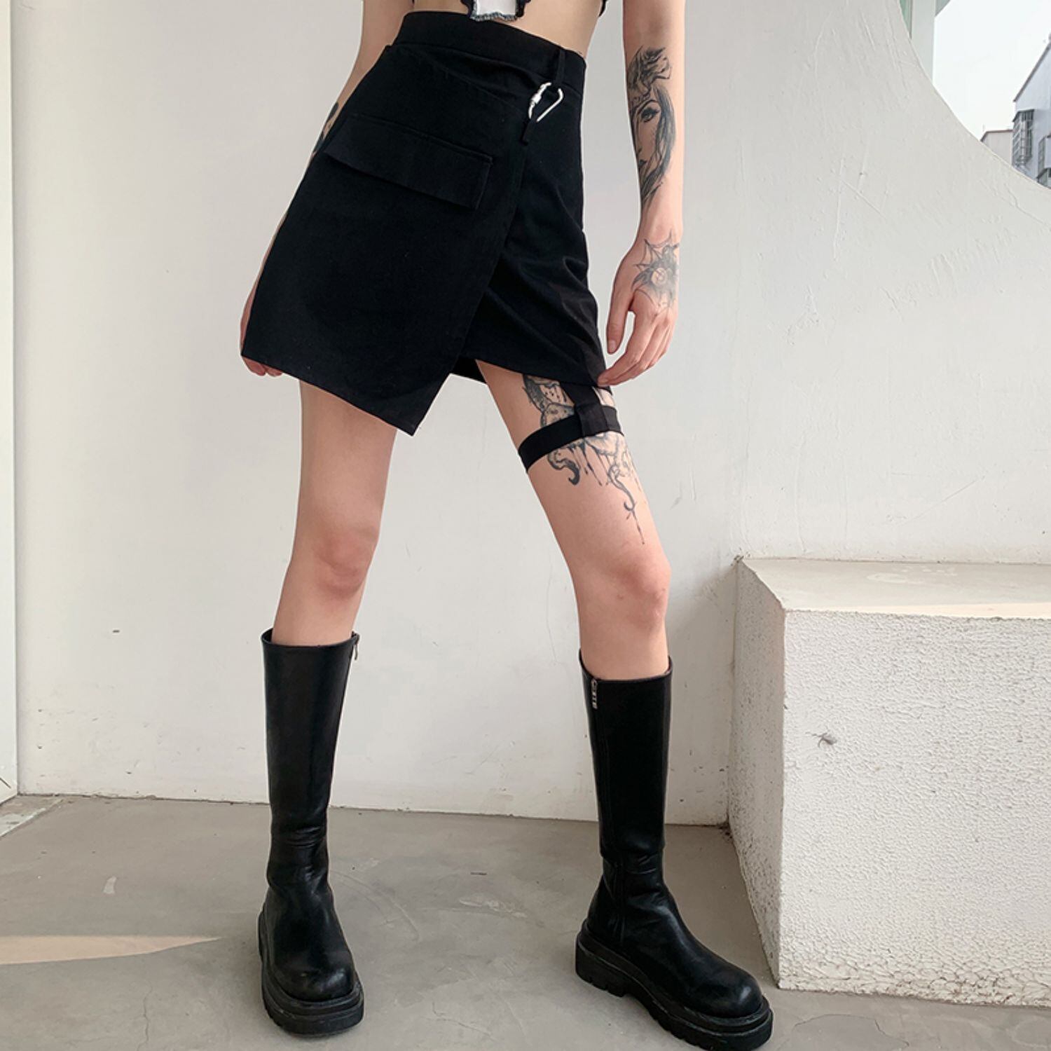 Aラインスカート ハイウエスト レッグループ スカート ミニスカート ブラック ストリート アメカジ ブラックコーデ a3019