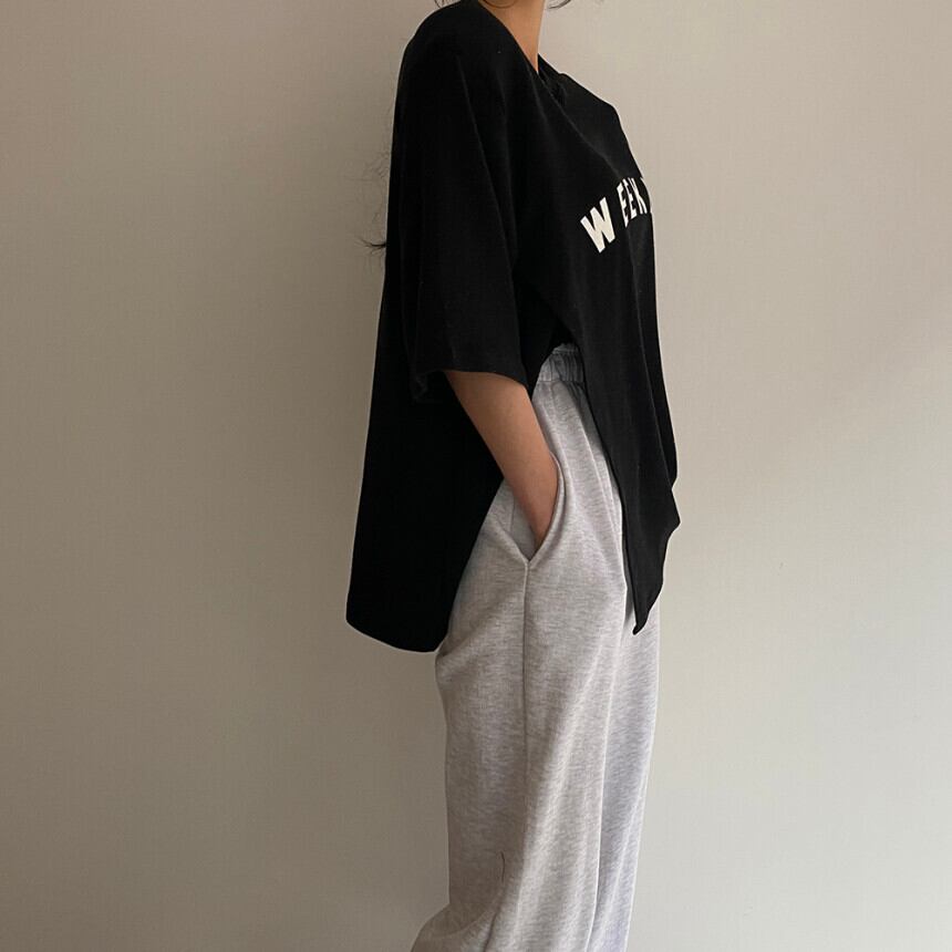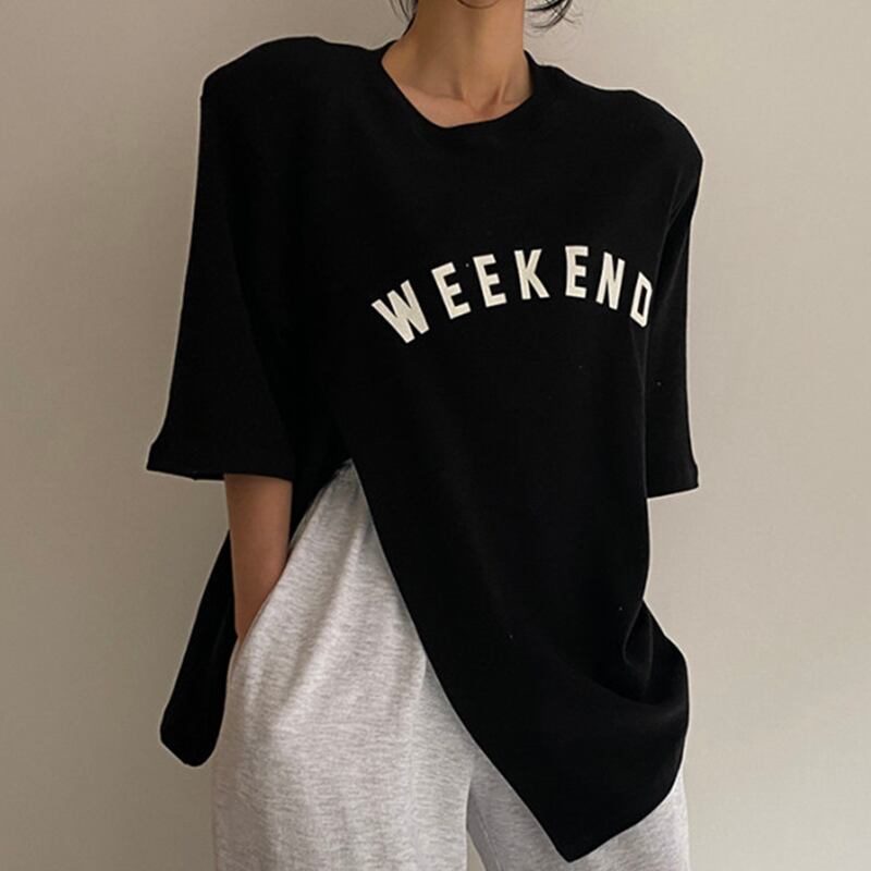 英字ロゴ サイドスリット半袖Tシャツ トップス 半袖Tシャツ ルーズ ラウンドネック 韓国 シック 夏 カジュアル 2カラー a3025