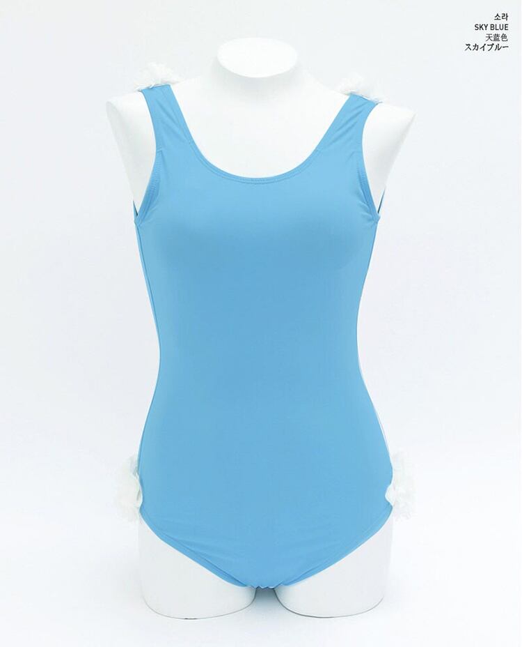 U字ラインに装飾されたホワイトフラワーがオシャレなワンピース水着