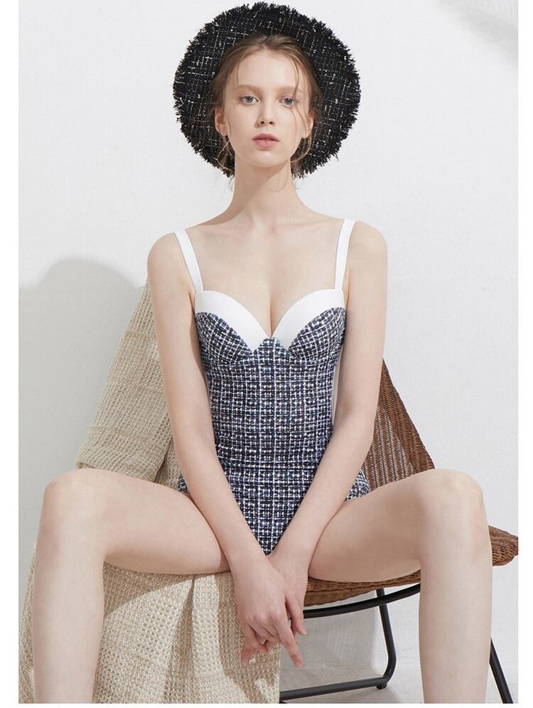 ツイード柄 ワンピース水着 モノキニビキニ チェック柄 水着 ビキニ bikini レディース スタイルアップ 体型カバー トレンド 新作 夏 海 プール リゾート セクシー a3036