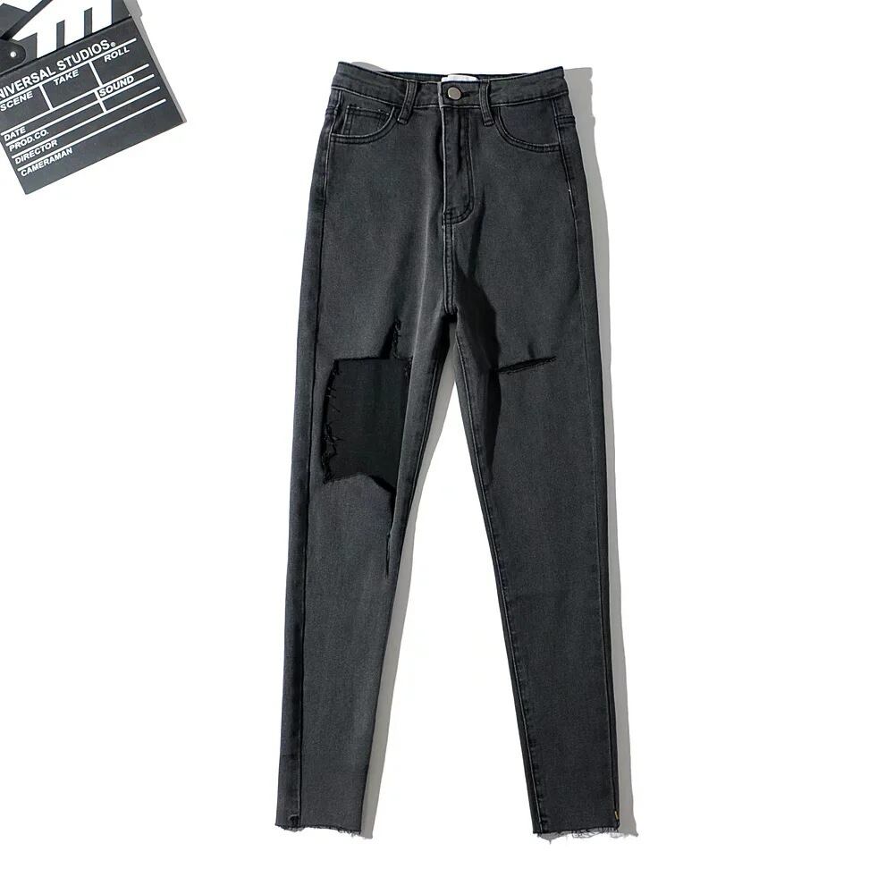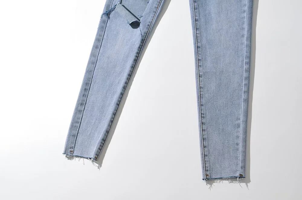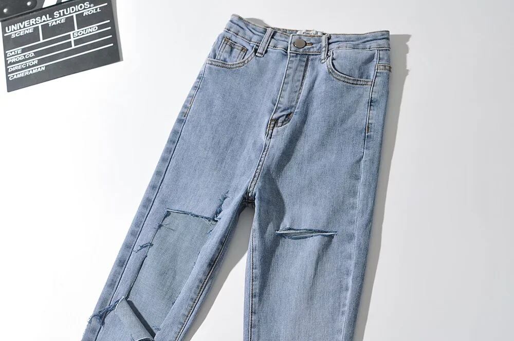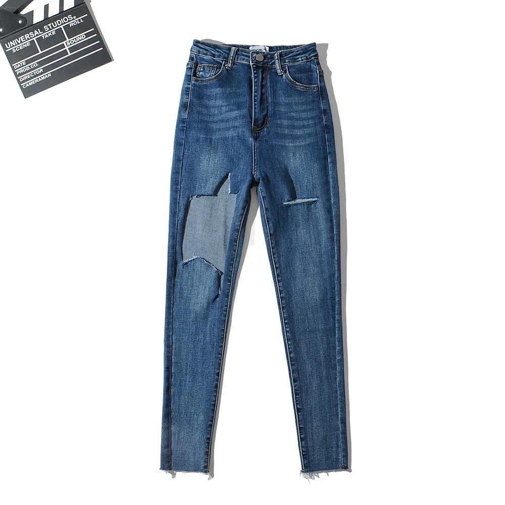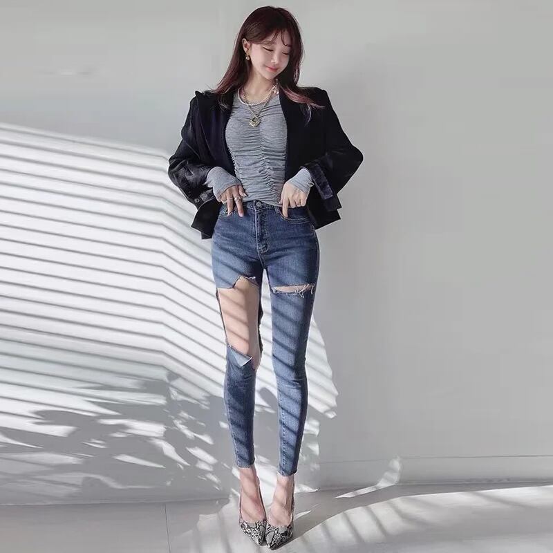 ダメージスキニージーンズ ストレッチジーンズ 9分丈 ダメージデニム スキニーデニム. タイト フィット スリム デニム ジーンズ 韓国 ハイウエスト 夏 レディース a3028
