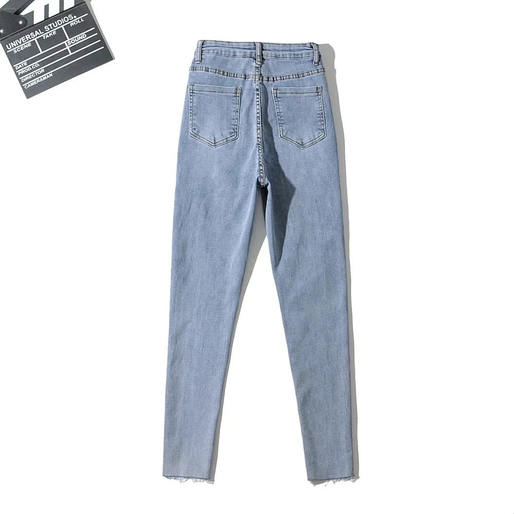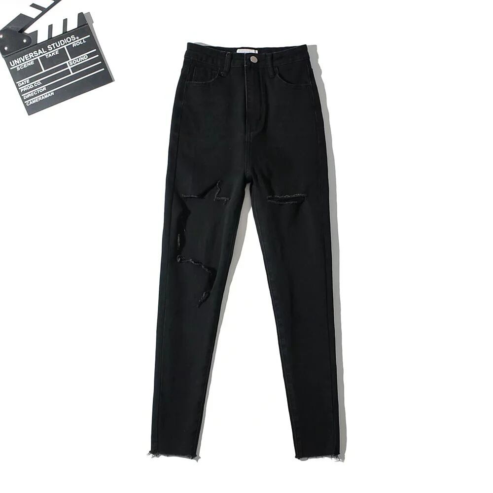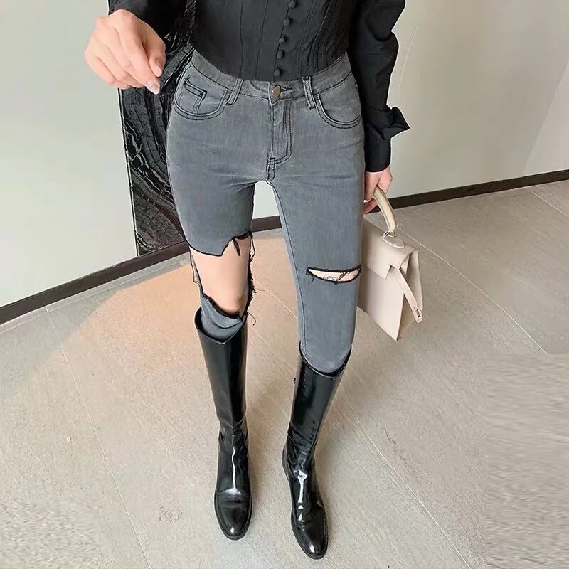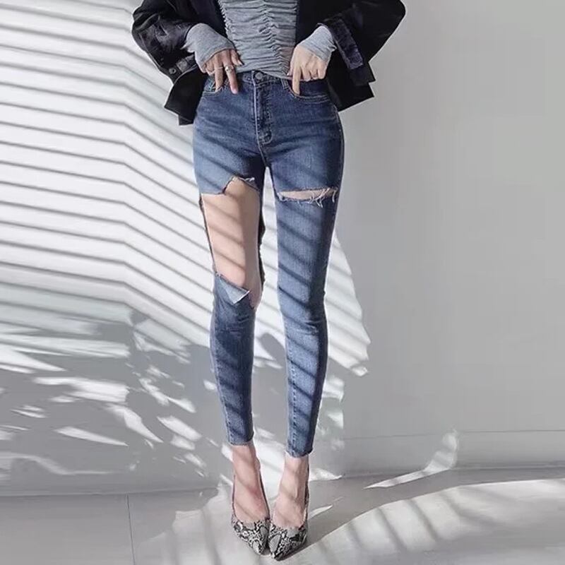 ダメージスキニージーンズ ストレッチジーンズ 9分丈 ダメージデニム スキニーデニム. タイト フィット スリム デニム ジーンズ 韓国 ハイウエスト 夏 レディース a3028