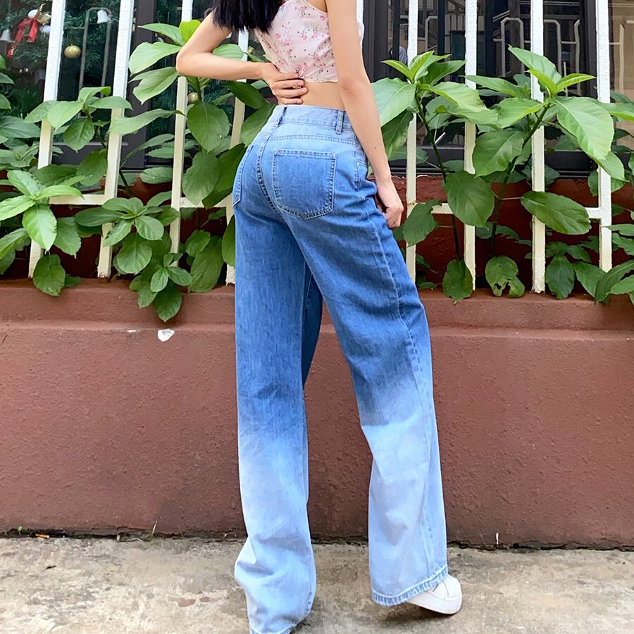 グラデーションハイウエストジーンズ ハイウエスト ルーズ ストレートジーンズ デニム ジーンズ カジュアルワイドレッグパンツ ストリート アメカジコーデ a3076