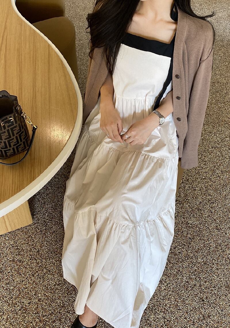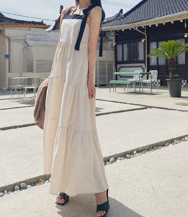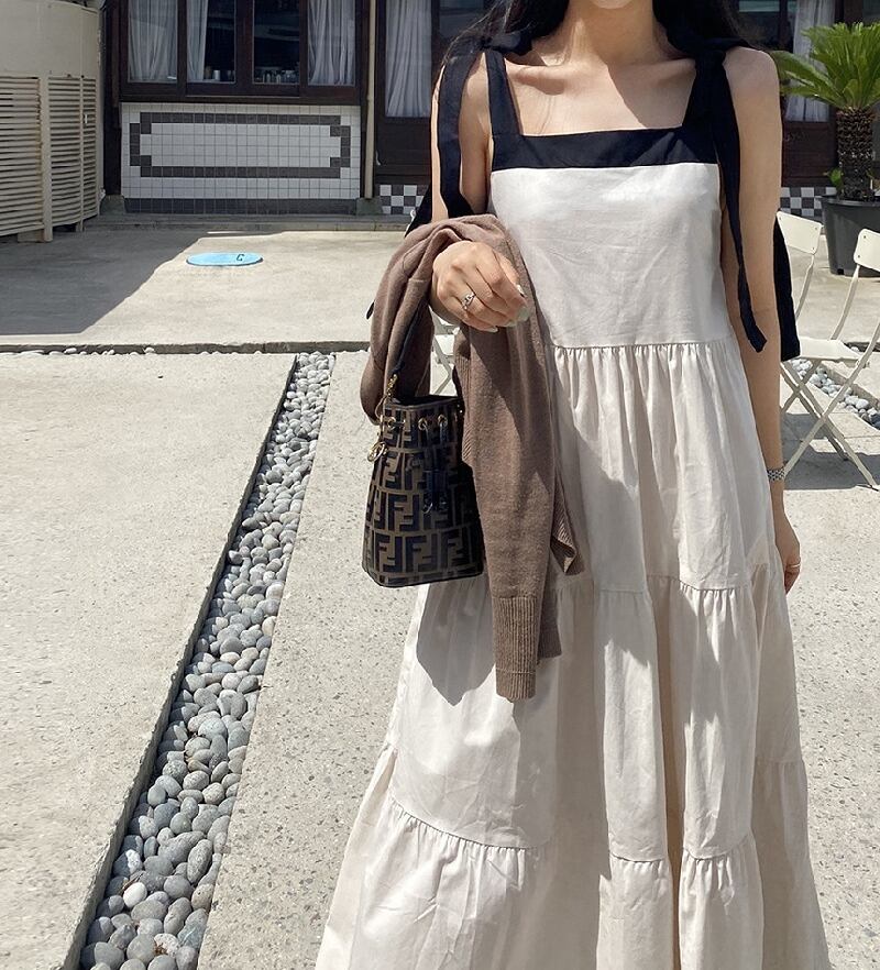 肩紐リボンワンピース ノースリーブワンピース ワンピース サマードレス サマーワンピ スクエアカラー ルーズ 韓国 シック フレンチ ハイウエスト 2カラー a3054