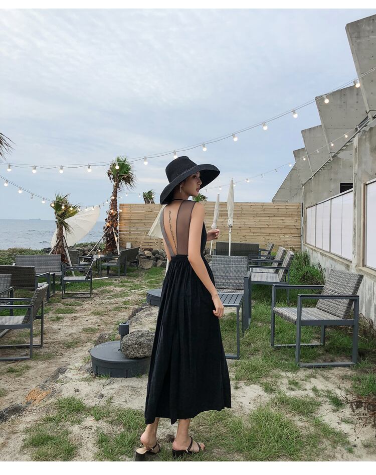 Vネックバックオープンワンピース ロングワンピース サマーワンピ ワンピース ドレス サマードレス セクシー ハイウエスト Aラインワンピース 無地 a3071