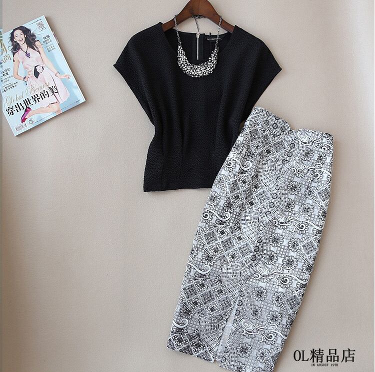 【セットアップ】ハーフスリーブトップス+ハイウエストスカート バンダナ柄 トップス スカート 柄スカート ツーピース お仕事コーデ ビジネスコーデ 上品 きれい 大人 シック a3074