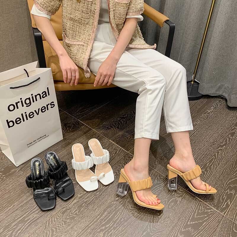 クリスタルハイヒールサンダル クリアヒール ミュール サンダル ハイヒール レディース 太ヒール オープントゥ 3カラー a3115
