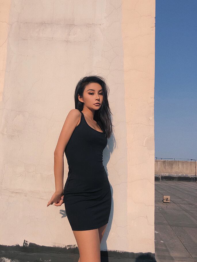 無地ストレッチタイトワンピース ノースリーブ ワンピース ミニワンピ ドレス ストレッチ セクシー 夏 ストリート アメカジ 2カラー. a3082