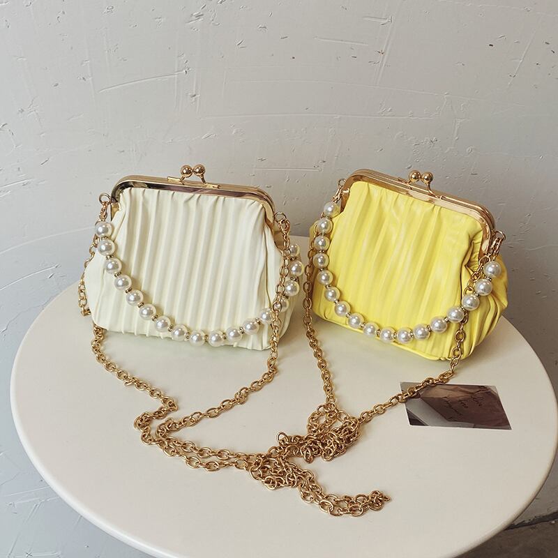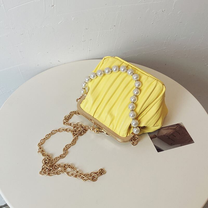 がま口ハンドバッグ パールチェーンショルダーバッグ ショルダーバッグ ハンドバッグ ミニバッグ バッグ bag mini トレンド 4カラー a3084