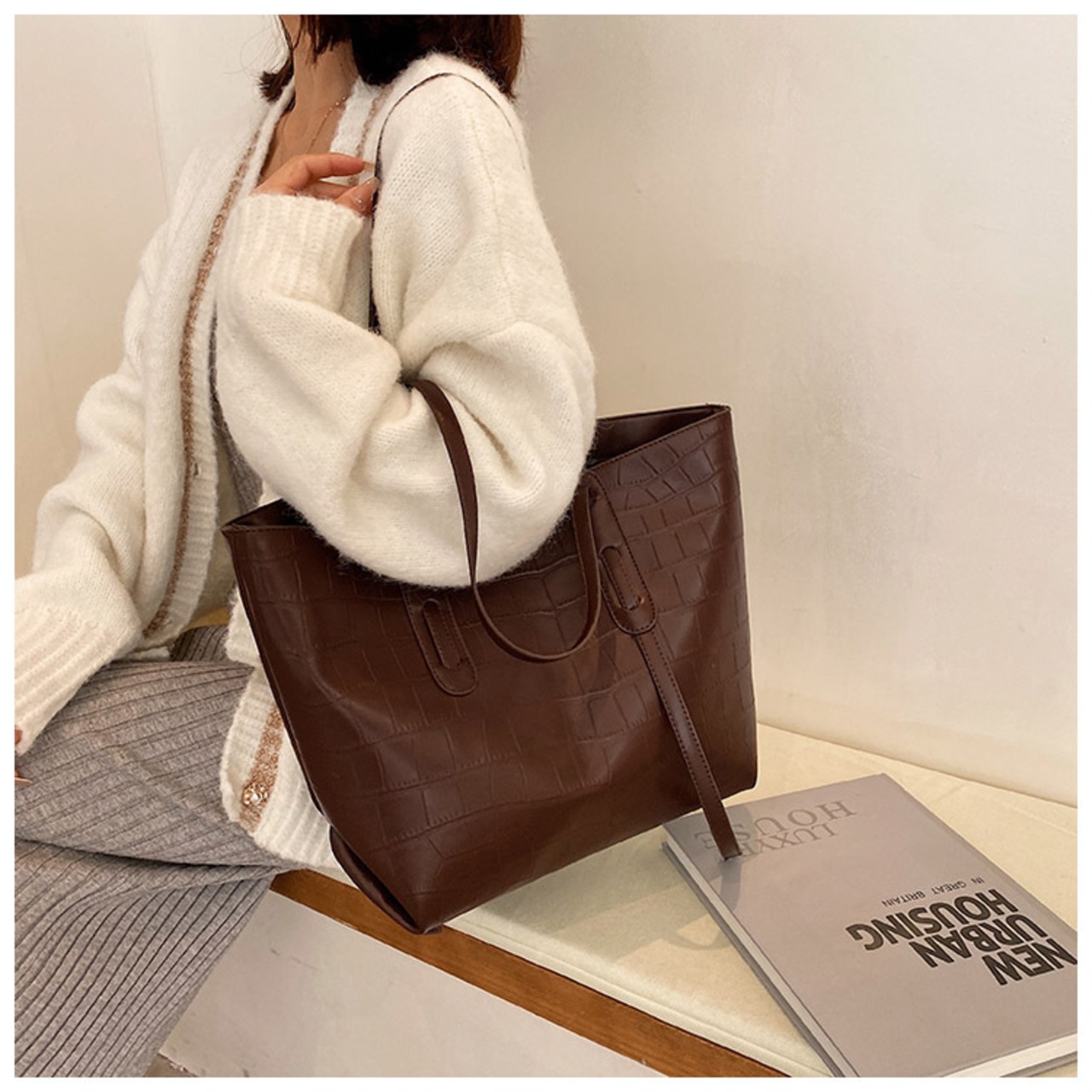 クロコダイル型押し 大容量トートバッグ