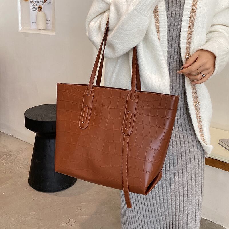 クロコダイル型押し 大容量トートバッグ ハンドバッグ トートバッグ シンプル PUレザー ビジネスバッグ バッグ bag 4カラー a3085
