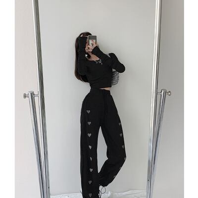 ハート柄 スウェット ルーズ ワイドレッグ スポーツパンツ カジュアルパンツ パンツ ハイウエスト スウェットパンツ 3カラー a3144