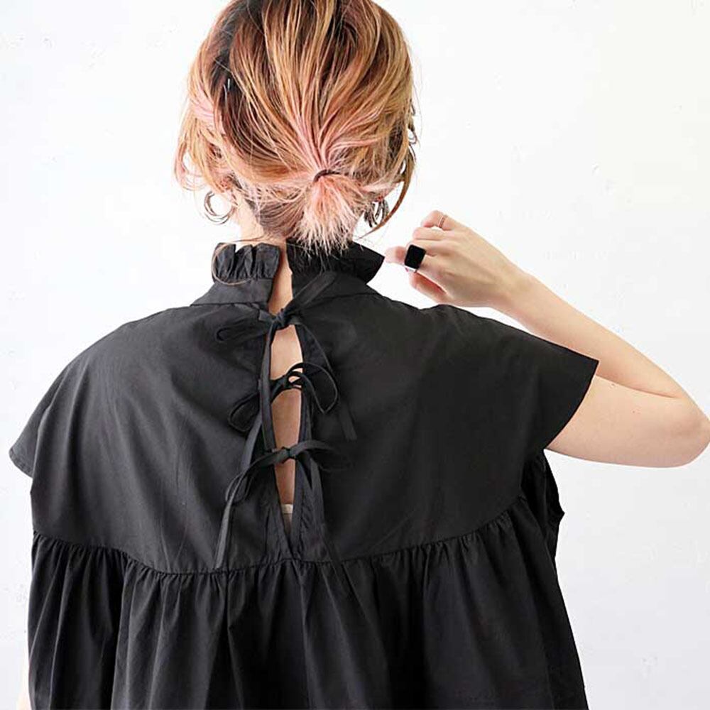 バックスタイルのレースアップがオシャレな半袖ブラウス