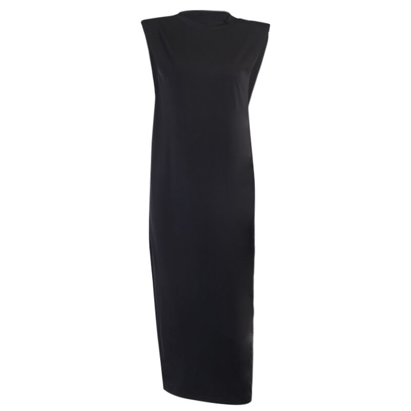 ノースリーブ無地ワンピース ショルダーパッド付き シンプル ルーズ ロングスカート ワンピース ドレス サマーワンピ 夏 ストリート アメカジ 薄手 2カラー a3130