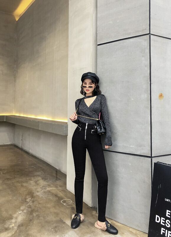 メタルジッパーブラックハイウエストジーンズ スキニージーンズ ハイウエスト スキニー ジーンズ ブラックデニム レディース ストリート アメカジ a3160