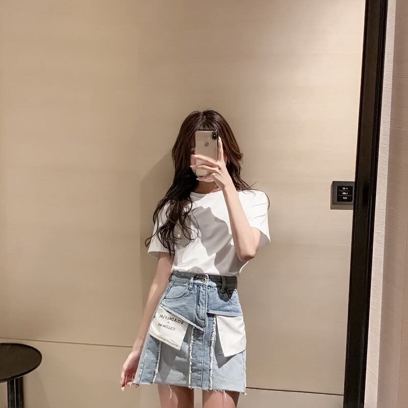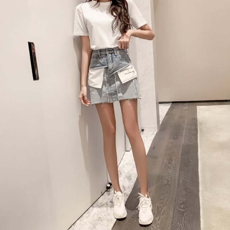 ポケットデニムスカート 台形スカート デニムスカート Aラインスカート スカート トレンド ミニ丈 カットオフデニム アシンメトリー ハイウエスト 可愛い レディース ミニスカ 韓国 オルチャン a3161