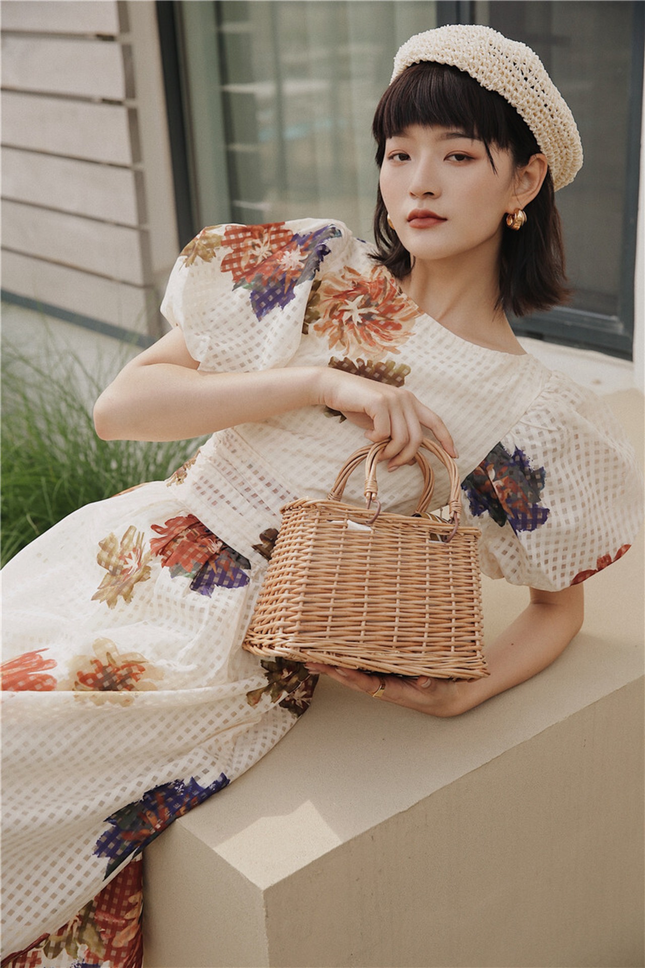 花柄ワンピース ランタンスリーブ エレガント 上品 レトロ パーティー ワンピース ドレス プリンセスドレス a3255