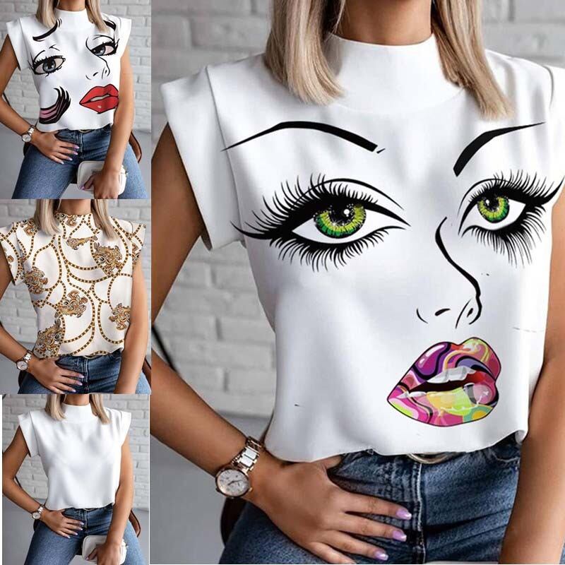 プリントハーフスリーブTシャツ スタンドアップカラー レディース Tシャツ トップス ハーフスリーブ 6パターン. a3260
