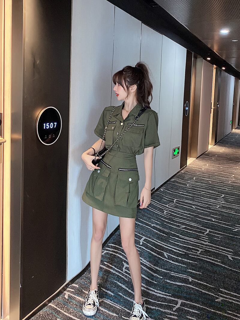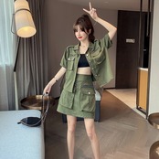 【セットアップ】半袖ジャケット+ショートスカート ツーピース スーツ ジャケット ハイウエスト 2カラー a3220