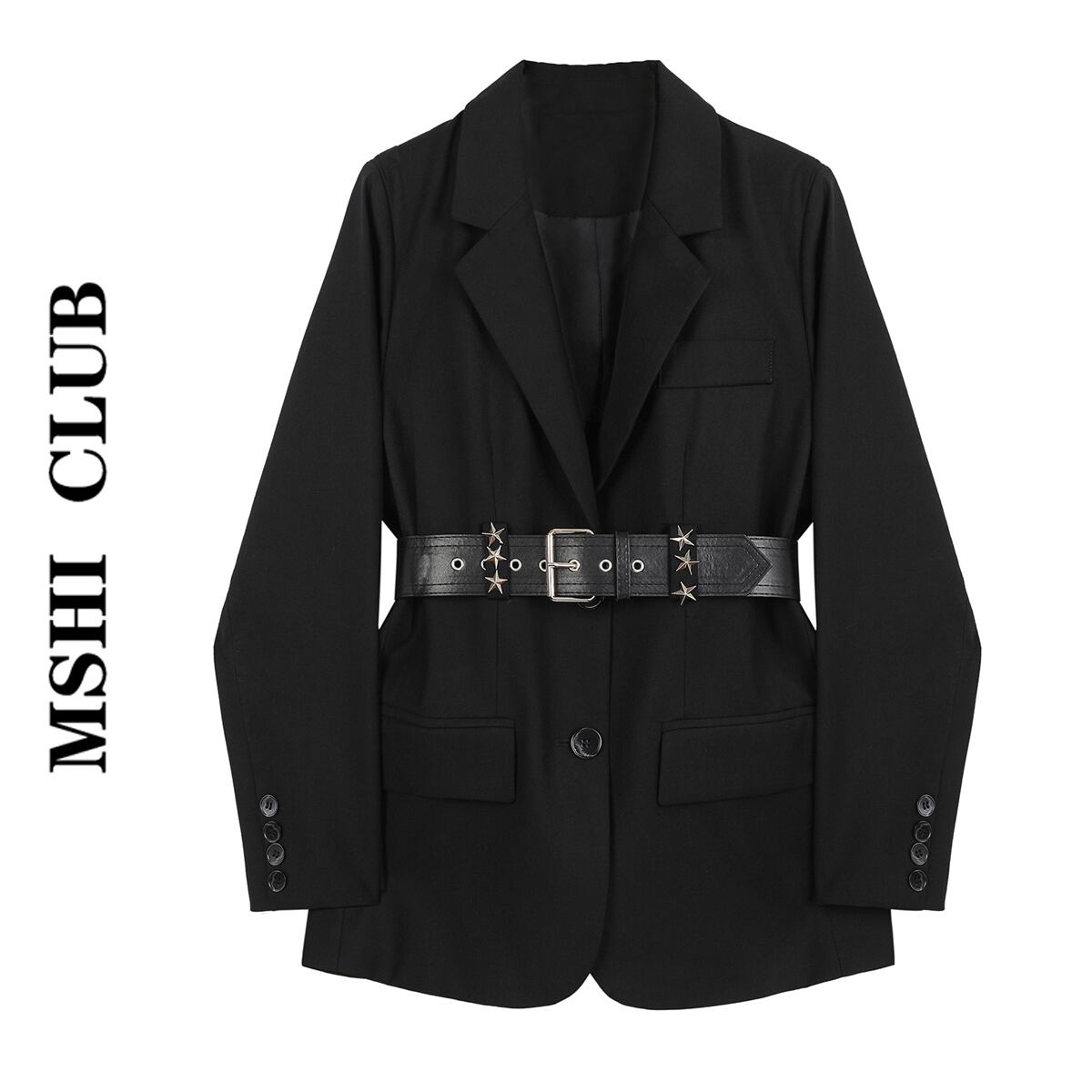 【ベルト付き】ブラックジャケット ジャケット スーツ 秋 冬 モード系 ブラックコーデ a3243