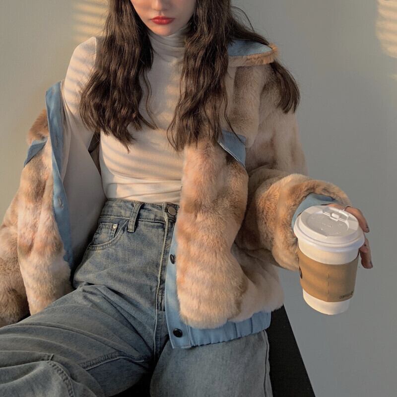 デニム素材×ファー素材の組み合わせが可愛いフェイクファーコート