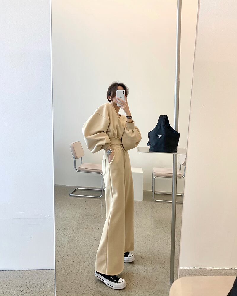 ショート丈のトップスにワイドレッグパンツの組み合わせがオシャレなスウェットセットアップ★
