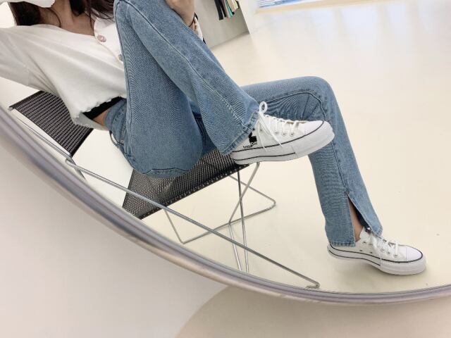 スリットのおかげでフレア感もあるので、スニーカーなどにはもちろんヒールなどどんなシューズとも合わせやすいですよ♫