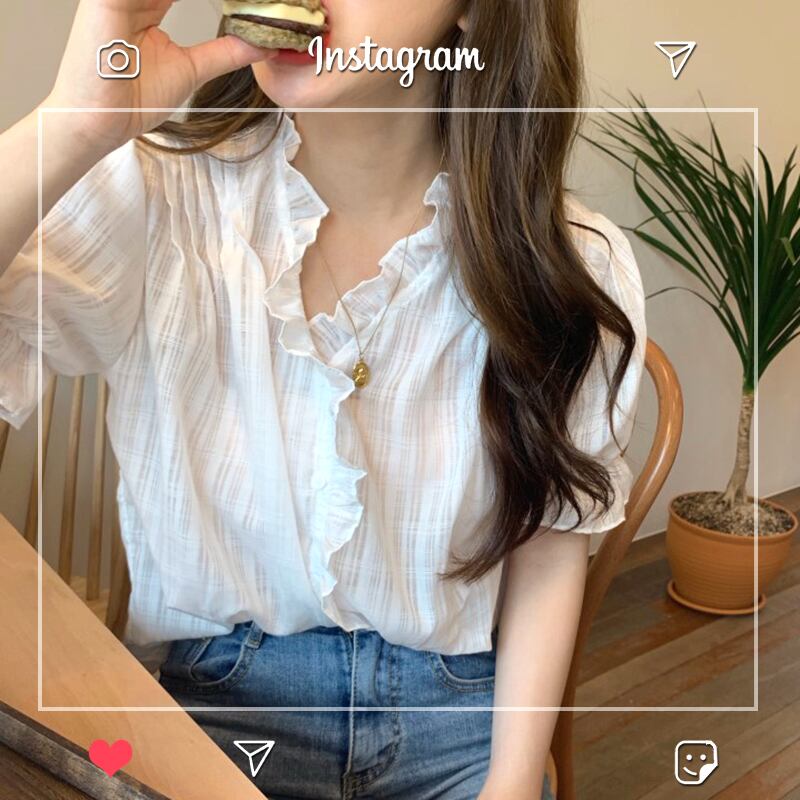 パフスリーブシャツ シャツ ブラウス 半袖 レディース. レトロ 韓国 かわいい フェミニン a3299