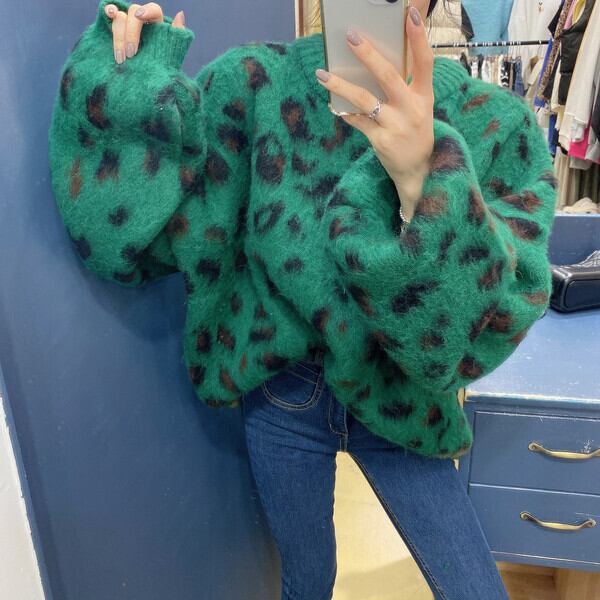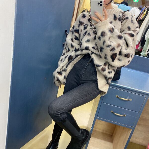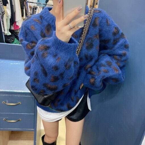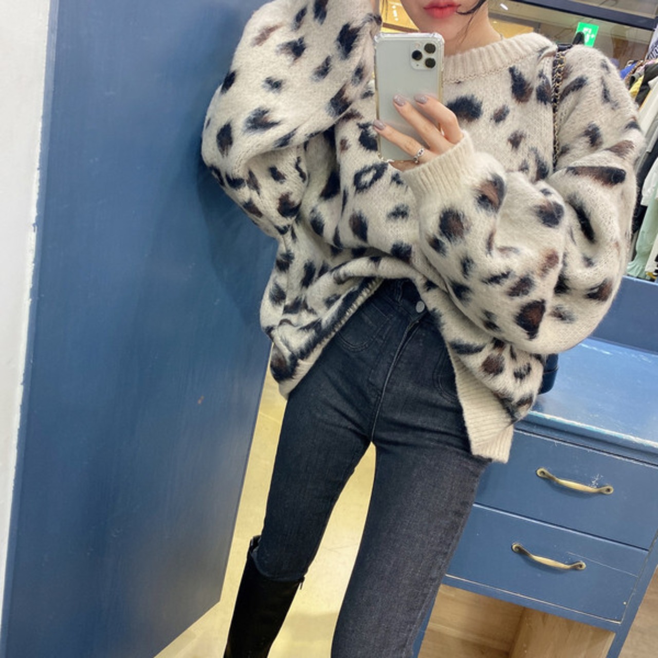 レオパード柄 セーター ニット ラウンドネック ルーズ ヒョウ柄 韓国 秋冬 レトロ 4カラー a3304
