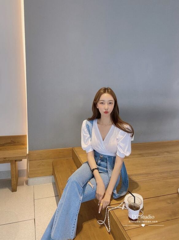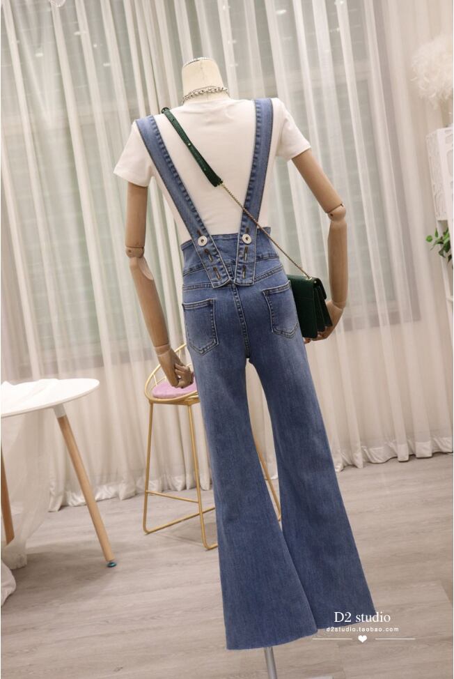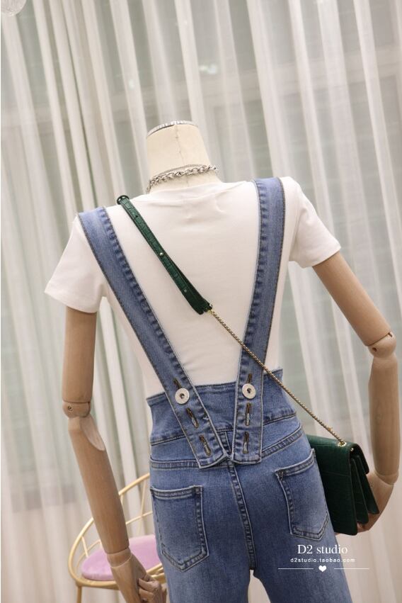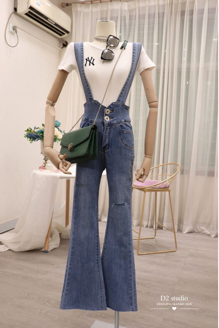 サスペンダーダメージジーンズ トレンド ハイウエスト スリム ジーンズ デニム ダメージ a3329