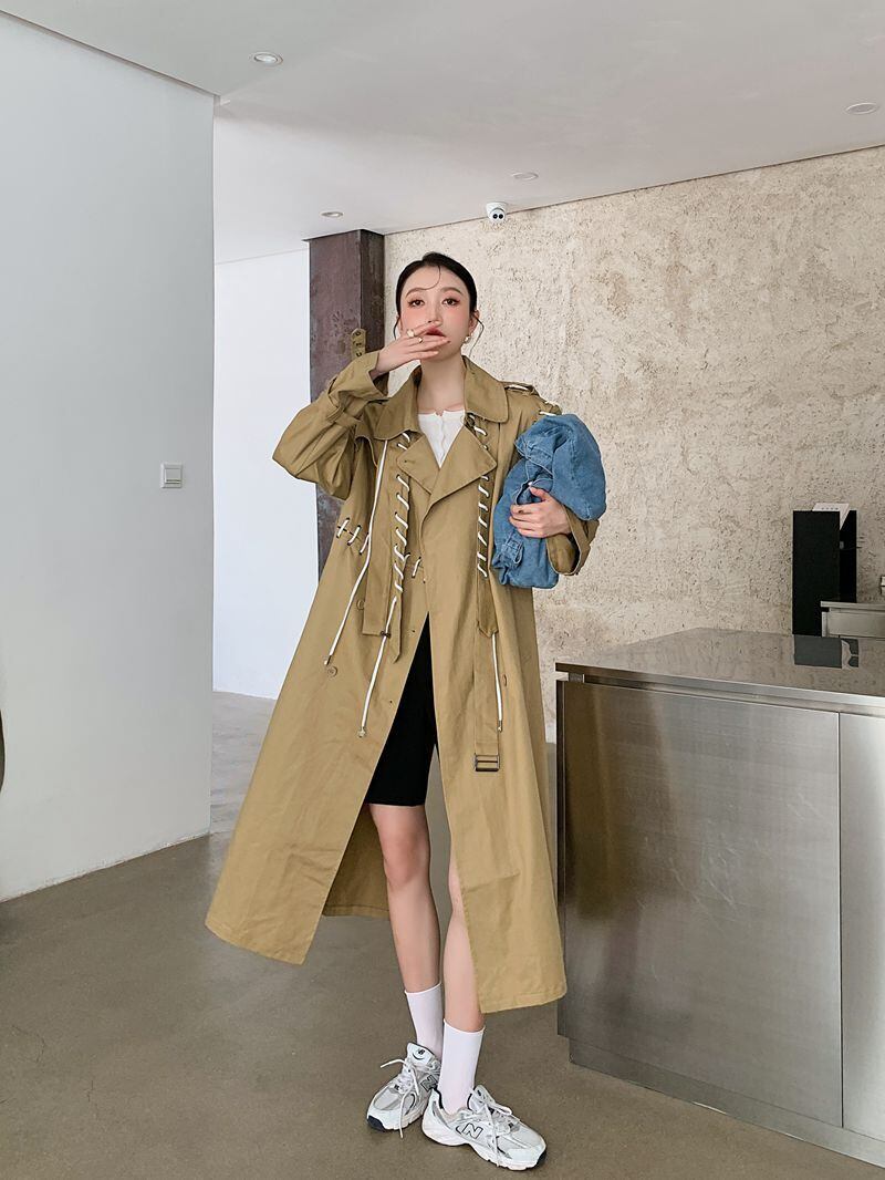 【日本未発売】トレンチコート ドローストリング コート ジャケット アウター ウインドブレーカー レディース. ロング a3342