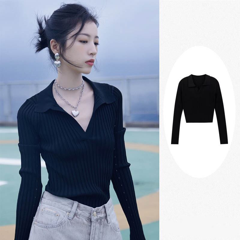 Vネック リブニット ニット セーター. トップス ポロシャツ 薄手 レディース a3343