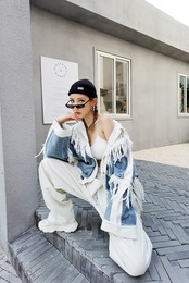 海外アイテムらしい奇抜デザインがオシャレなフリンジデニムジャケット