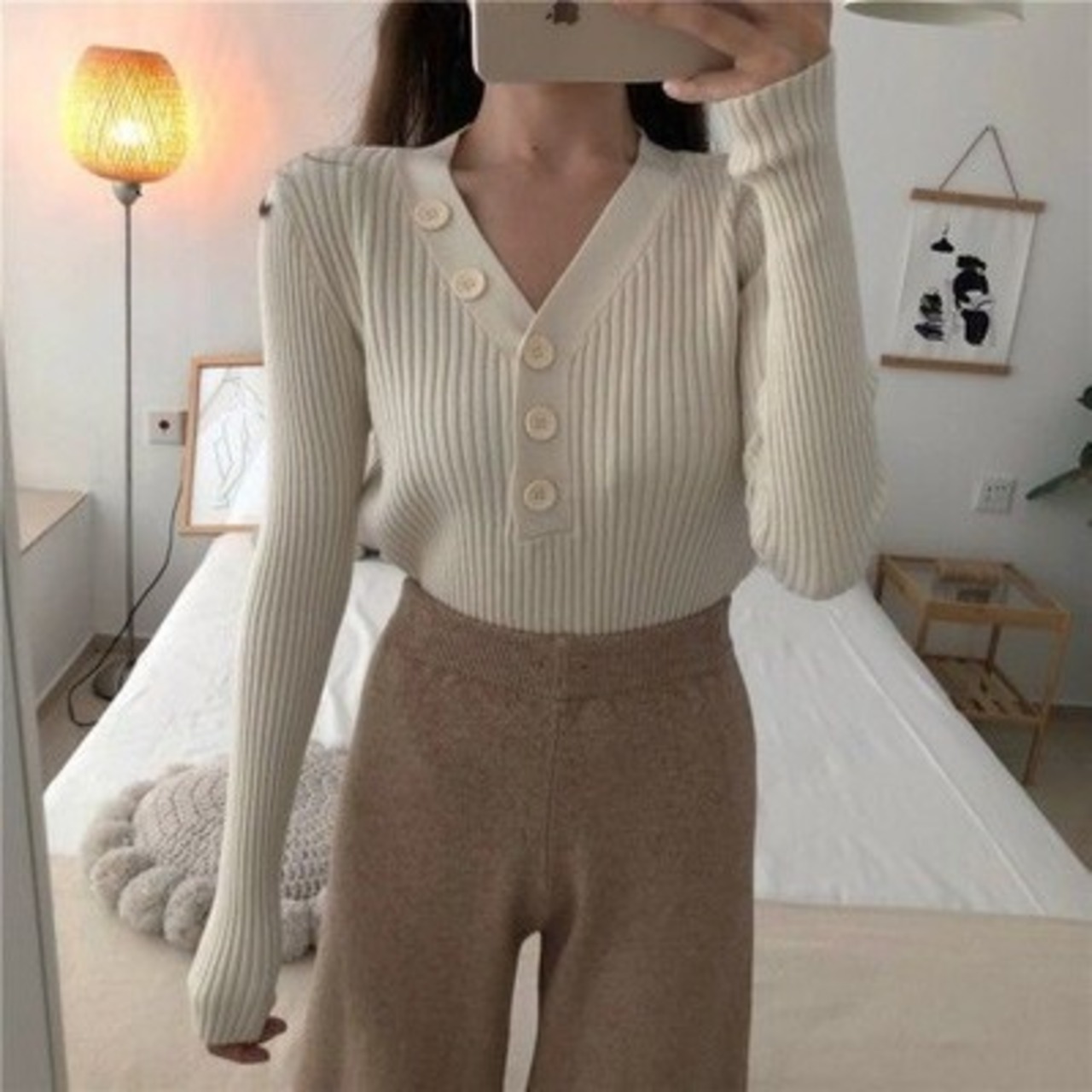 Vネックリブニット ボトミングセーター リブニット セーター ニット 長袖 スリム 秋冬. 10カラー a3348