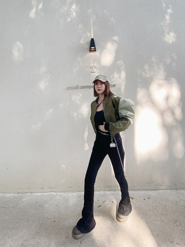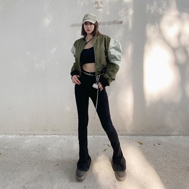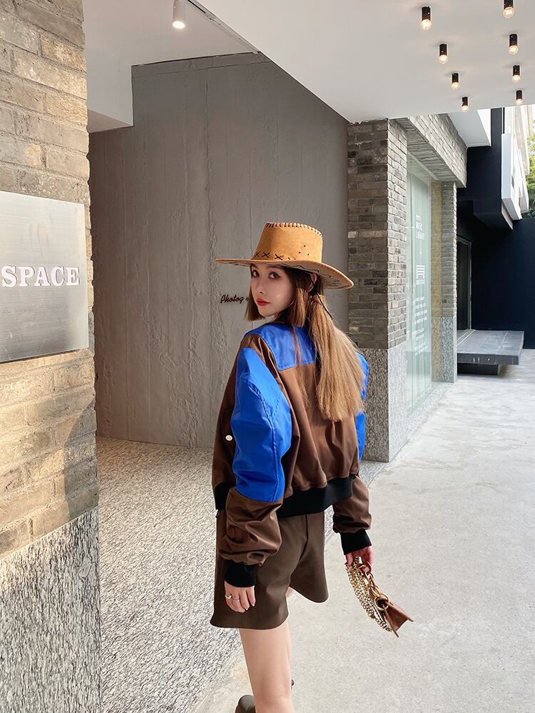バイカラージャケット ジャンパー ブルゾン ジャケット アウター レディース ルーズ. ショート丈 パフスリーブ a3387