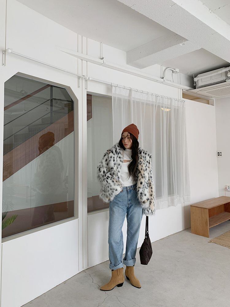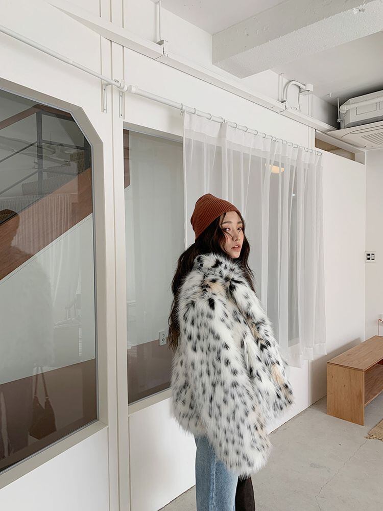 ヒョウ柄 ファーコート 毛皮 ミドルコート ファー ルーズ 豹柄 レオパード柄. アウター 冬 a3388