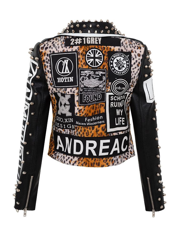 スタッズ付き ライダースジャケット レザージャケット ヒョウステッチ ジャケット アウター 長袖 パンクロックジャケット 革 a3403