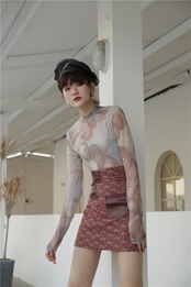 透け感のあるメッシュ生地シースルーボトミングシャツ