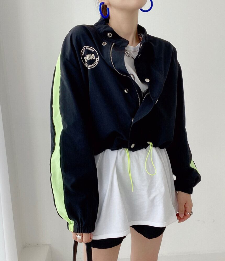 【セットアップ】ショートジャケット+Aラインスカート バイカラー ジャケット スカート スポーティー ツーピース 2カラー a3409
