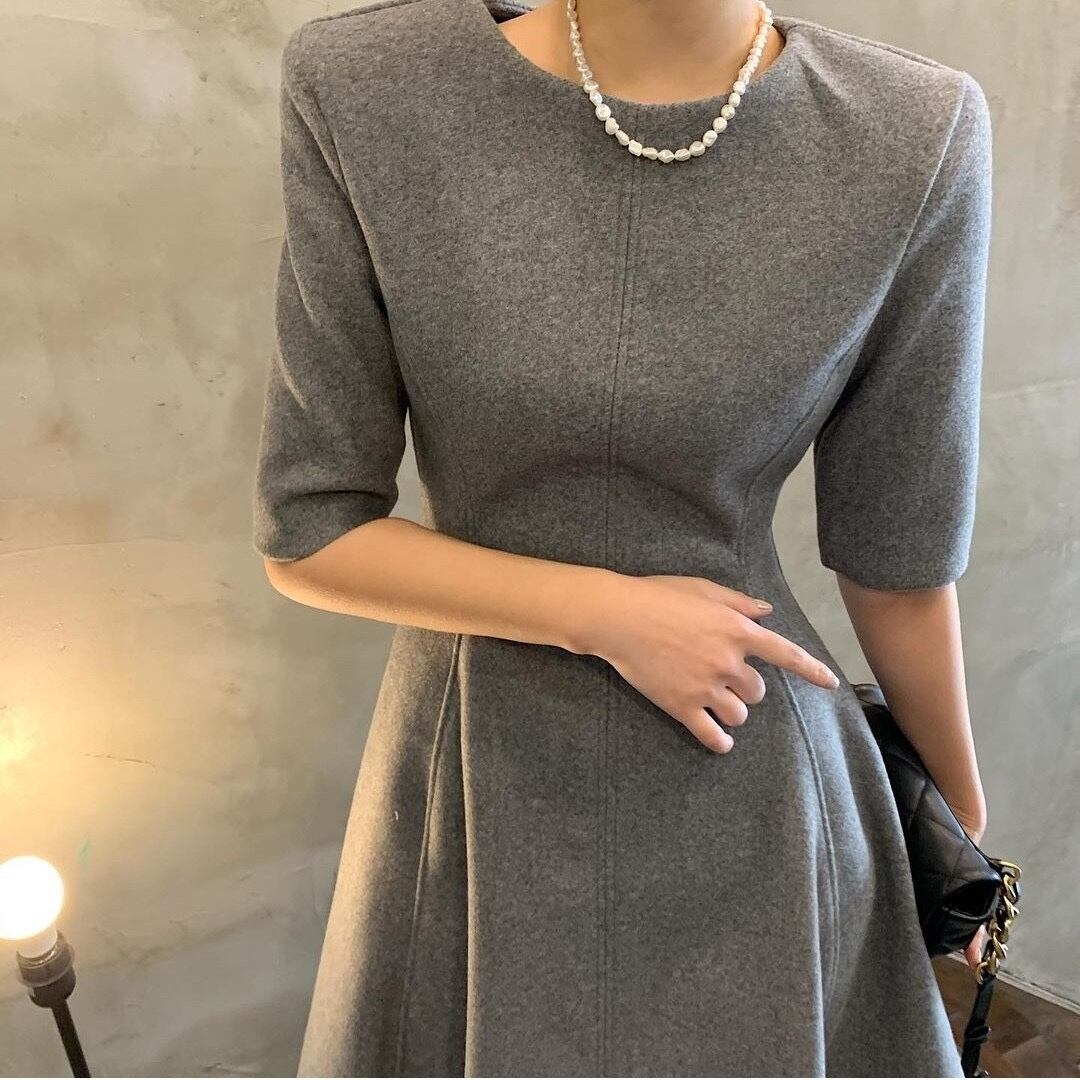 フレアワンピース. スリムウエスト ワンピース ドレス フレア ラウンドネック. ハイウエスト. Aライン a3414