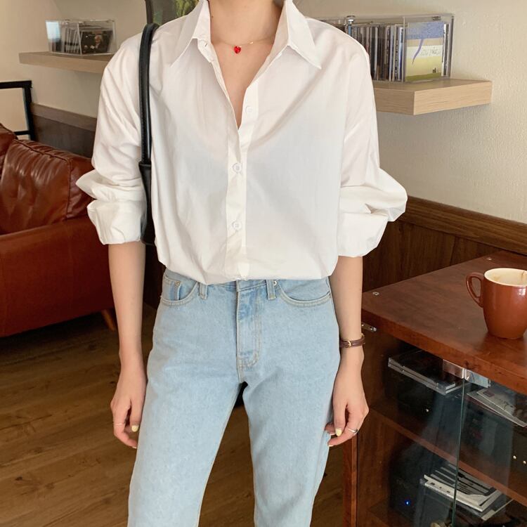 バックネックオープン 長袖シャツ トップス シャツ ブラウス ルーズ 無地 a3429