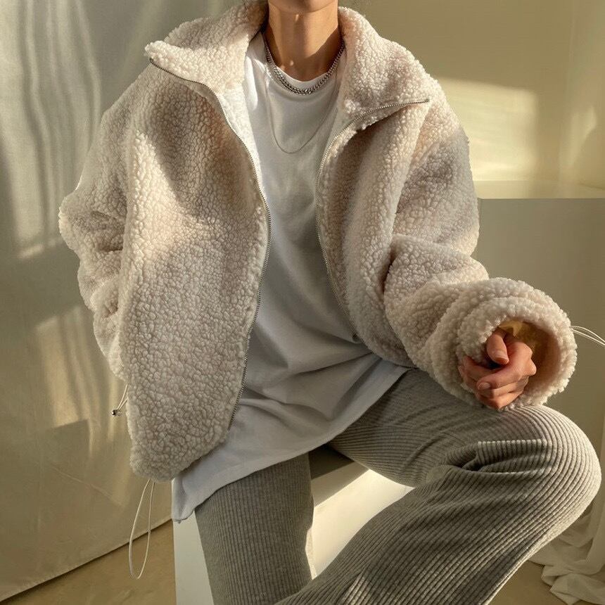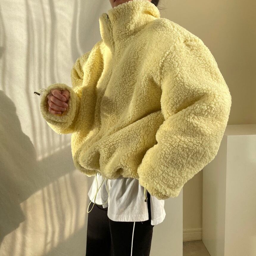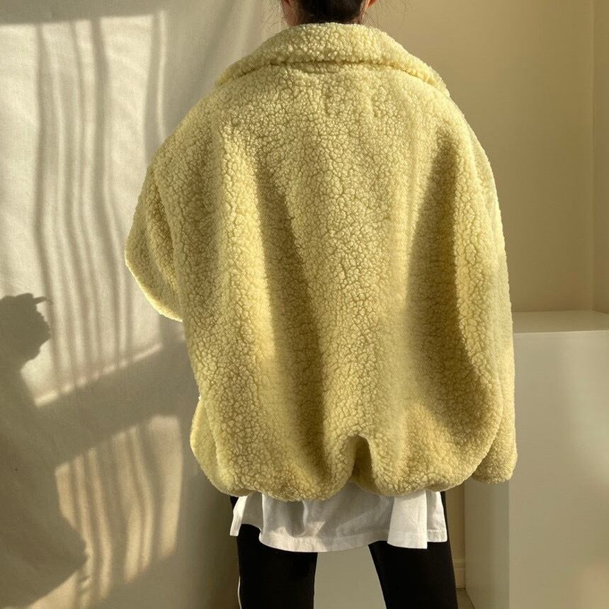 ラムヘア ショートコート イミテーションラム スタンドカラー ルーズ ジャケット コート アウター 秋冬 レトロ a3516