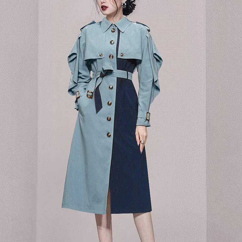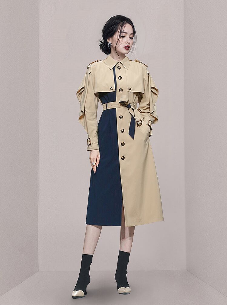 バイカラー トレンチコート ウエストタイ ミドル丈 ヨーロピアン ジャケット. コート アウター レディース ウインドブレーカー 2カラー a3526