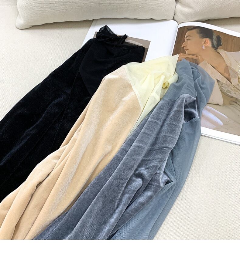 ボトミングシャツ 長袖Tシャツ. ベルベット メッシュ トップス ハーフハイカラー レース 3カラー a3439