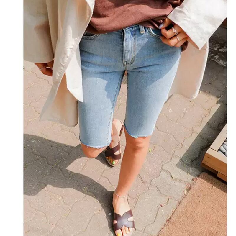 ハーフダメージデニム ストレッチハーフデニム ショートパンツ 5分丈. デニム ジーンズ ハーフデニム ハイウエスト 3カラー a3441
