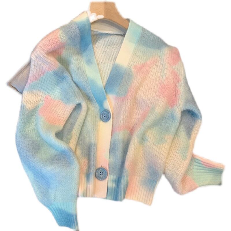 絞り染めグラデーションがオシャレなVネックカーディガン