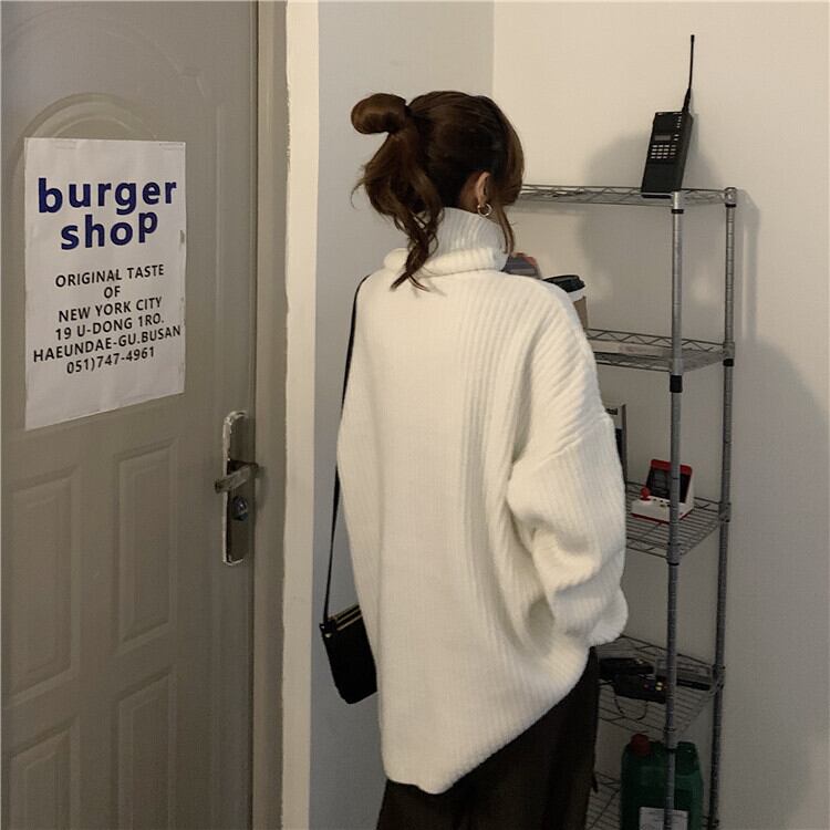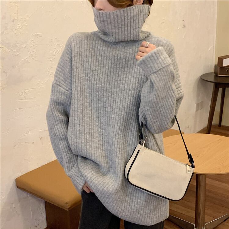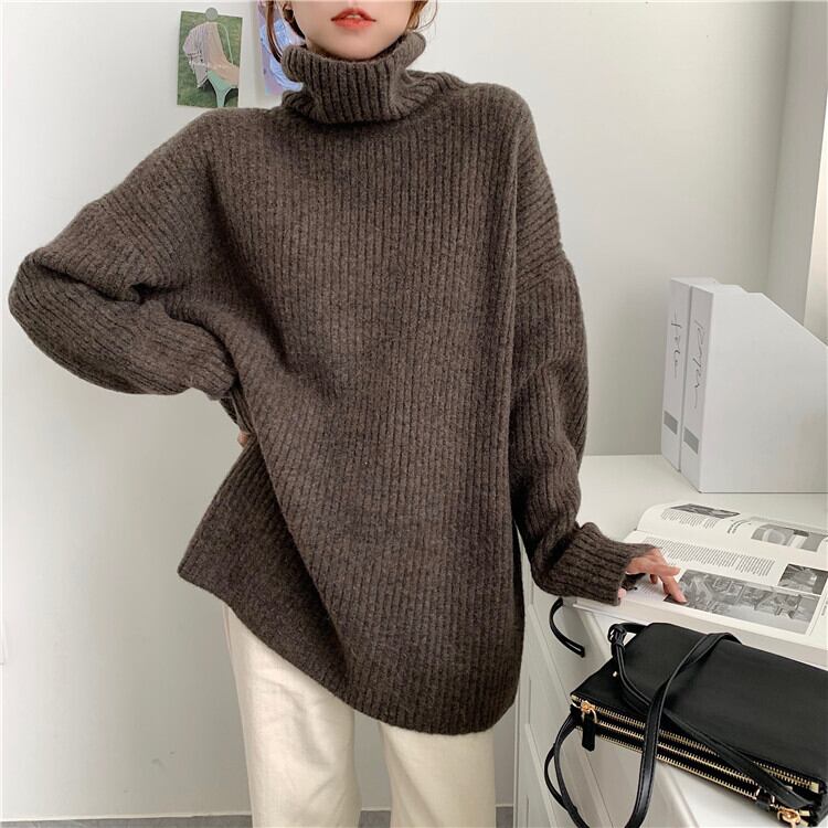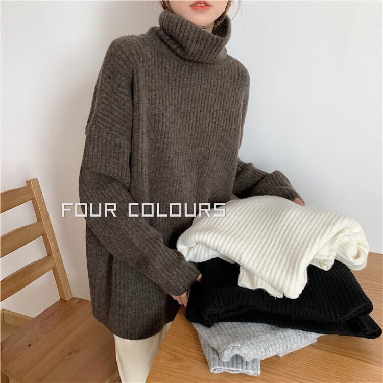 タートルネックセーター ニット. セーター トップス レディース 秋冬 厚手 ルーズ ミドル丈 4カラー a3480