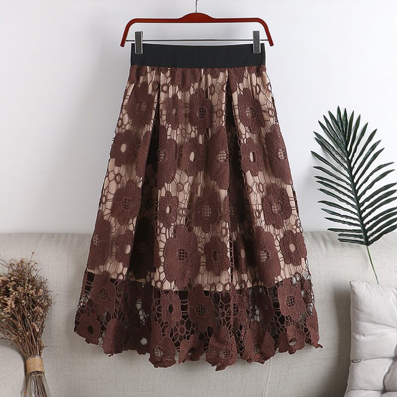 フラワースカート Aラインスカート 花柄 スカート ハイウエスト バックジッパー レーススカート ミドル丈 3カラー. a3487