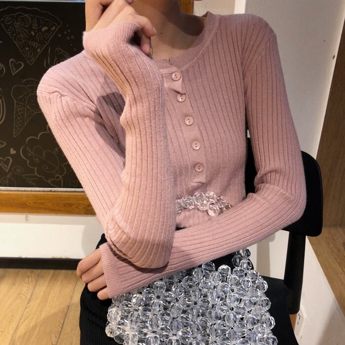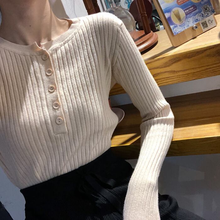 リブニットセーター セーター. ニット レディース 秋冬 ラウンドネック 長袖 スリム ボトミングトップス 7カラー a3488